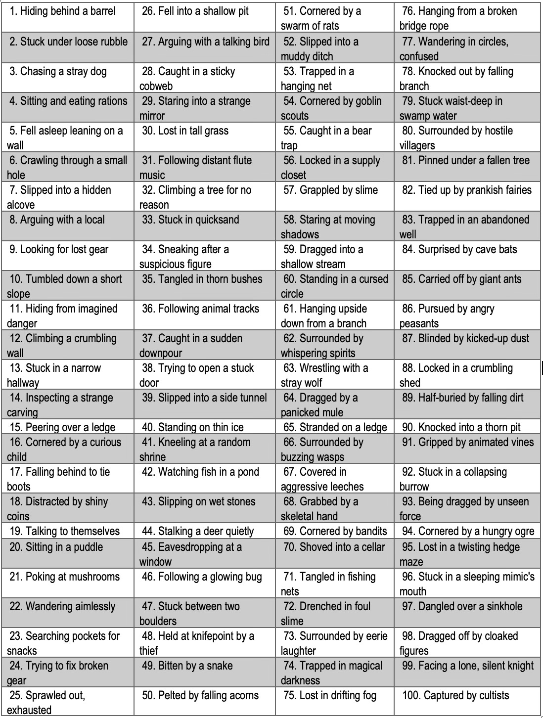 D100 Tables: Missing Party Members