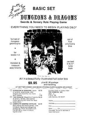 Check this out, an old add to buy the basic set from TSR for levels 1 to 3...Ah...look at the price... I dont think you can purchase any D&D books for that cheap anymore. Look an enjoy, just don't print it and send it in, I'd imagine you will get nothing... but who knows :)