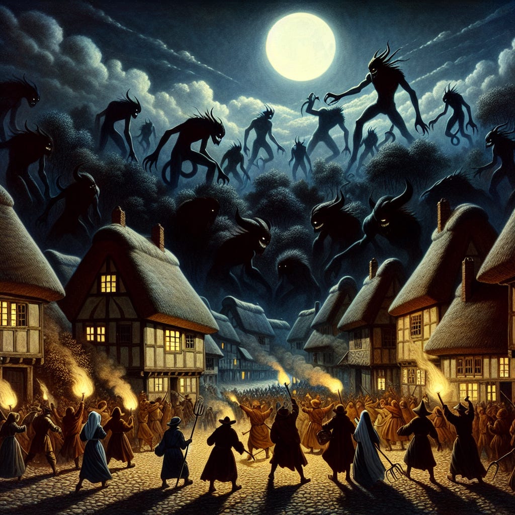 As the PCs arrive at the dock, they are greeted by a throng of villagers gathered around a disheveled man, who appears battered and breathless. With desperation in his voice, he implores anyone willing to help his village, recounting harrowing tales of dark creatures that haunt their nights. He offers a promise of ample reward—shelter and sustenance—if someone would investigate the origins of these sinister beings.