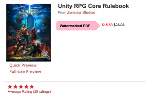 For example, I've had my eye on certain games like Unity RPG Core book, but I wasn't gonna spend $25 on something and take a chance (Sorry publisher, no offense.. I am sure people say the same shit about anything I do.) But during this sale its only $15 something and that is a better gamble price.. plus also to get it printed it would be another $10 plus tax.. so I am back up to the $25 and I have a hard copy like I enjoy!