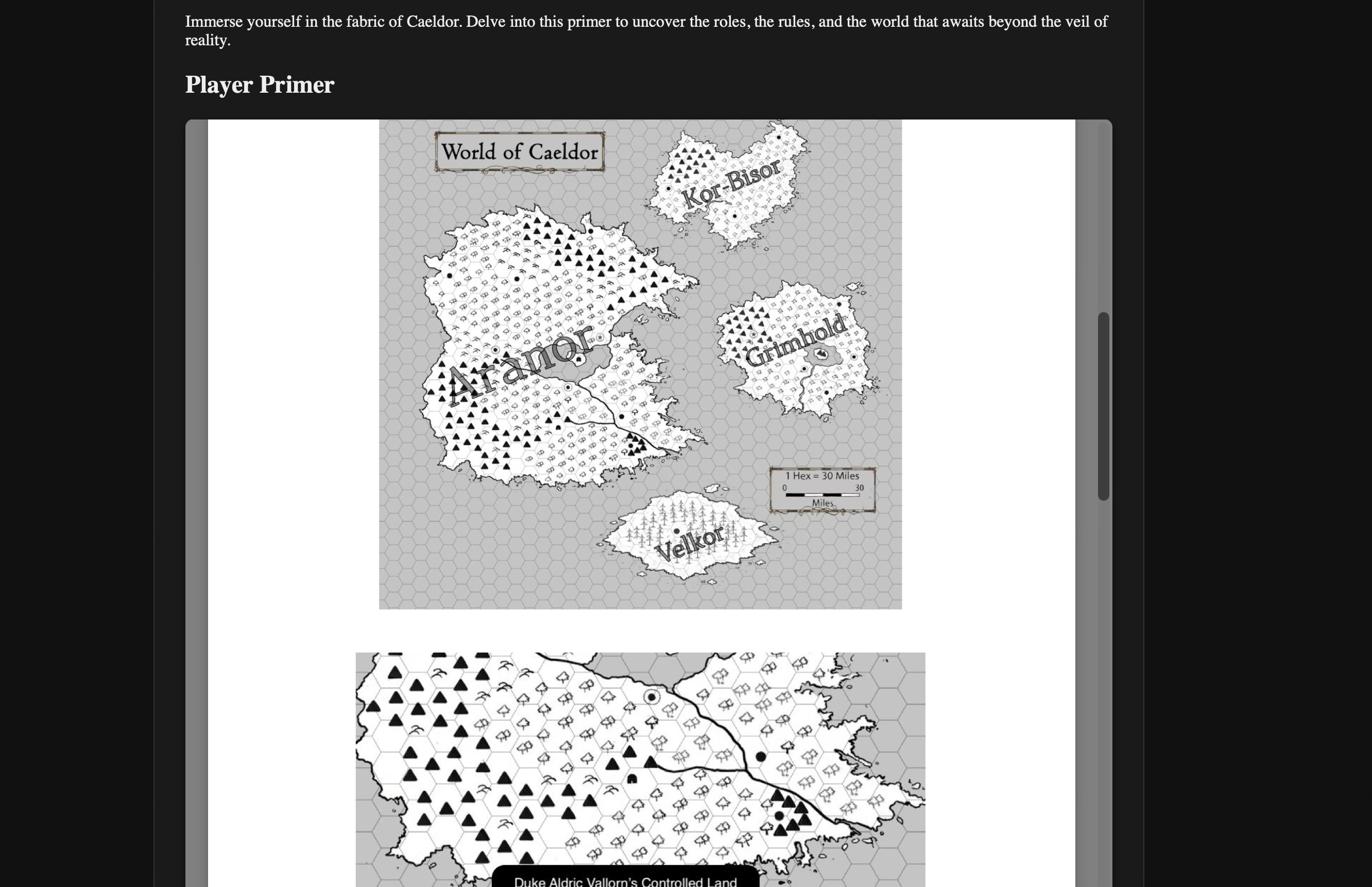 I have a nice section for the “player primer” — in which I like to do before any campaign I start with my group, giving them a pdf of what to expect, what they know, and what the land looks like.
