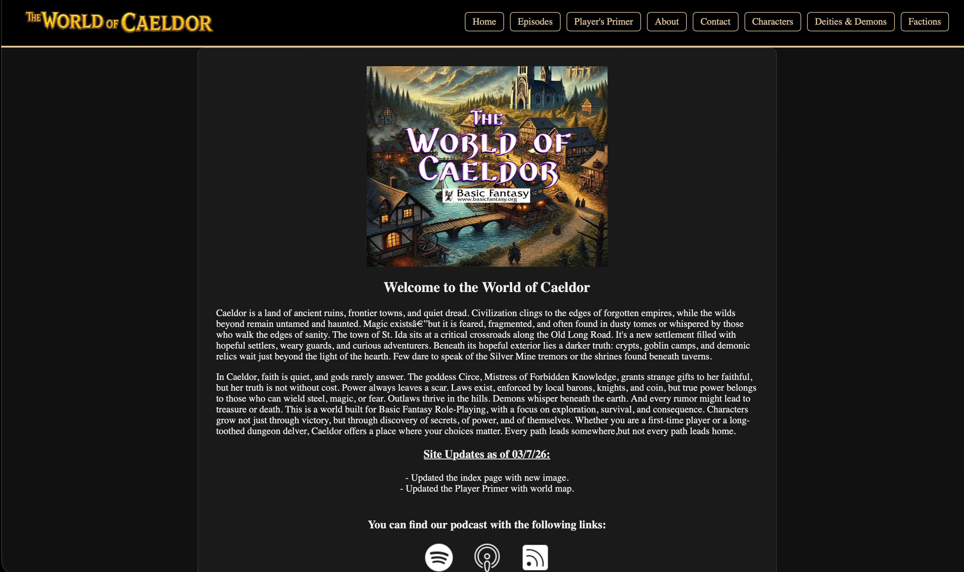 Some folks have asked to see the campaign website I use for my Basic Fantasy Actual play podcast, called the World of Caeldor. Well here it is, on a simple platform, and websphere that kind of reminds you of the good old days of the internet, back when we had Geocities, Angelfire and AOL Townpages. Remember those? Most of you, probably not.